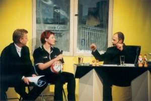 Die DSC Volleyballerinnen hier Kapitän Peggy Küttner und Manager Klaus Kaiser