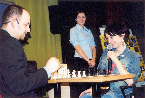 Elisabeth Pähtz U-18 Schachweltmeisterin Elisabeth Pähtz ist gerade mal 18 Jahre jung und hat schon richtig was erlebt. Die Thüringerin, welche seit kurzem in Dresden ans Sportgymnasium geht, ist U-18 Schachweltmeisterin, spielte einige Partien gegen den Schach-Guru Kasparow und die Schach-Anfänger-Brüder Klitschko, bezauberte zwei Mal die Zuschauer der Harald Schmidt Show und entzauberte im Alter von 14 Jahren, zusammen mit Hape Kerkeling, mehrere Bundesliga Schachspieler. Sie spielte auch gegen Mario Thiel Schach, hatte insgesamt für ihre Züge 60 Sekunden Zeit und Thiel 9 Minuten. Die Schachuhr lief und insgesamt dauerte das Spiel dadurch 10 Minuten. |
