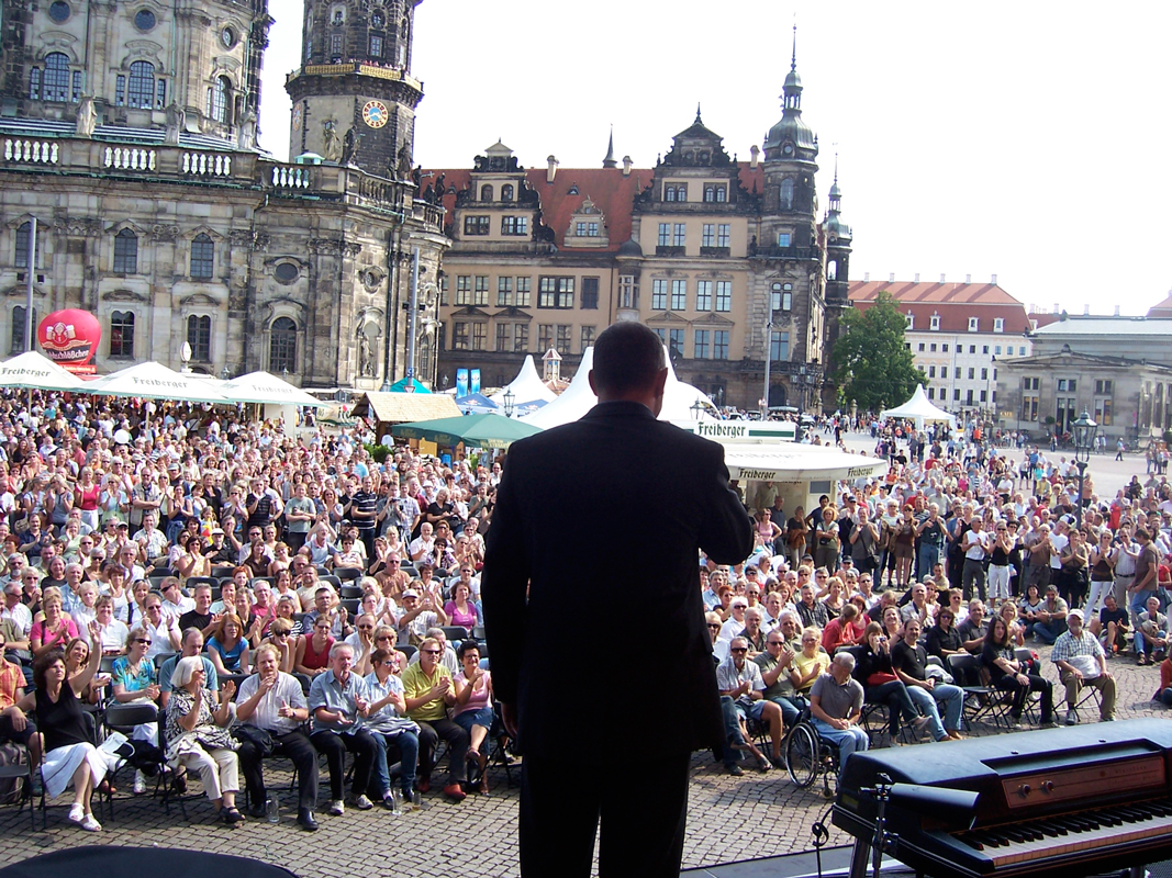 Ob nun die eigene Show, kleinere oder Großveranstaltungen mit mehreren zehntausend Besuchern - er genießt die Bühne.